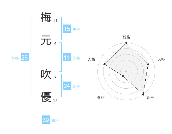 梅元 吹優さんの総格は39画の5点!