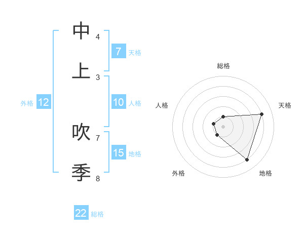 家系が持つ宿命的な運勢を表します。祖先から受け継いだ苗字ですので自分の力が及びません。家柄を象徴します。