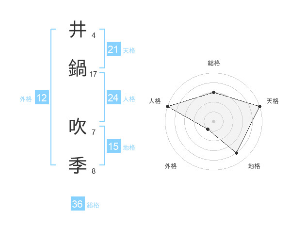井鍋 吹季さんを姓名の画数から五運を鑑定