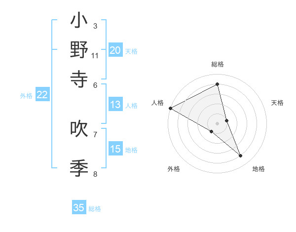 小野寺 吹季さんの外格は22画の1点!