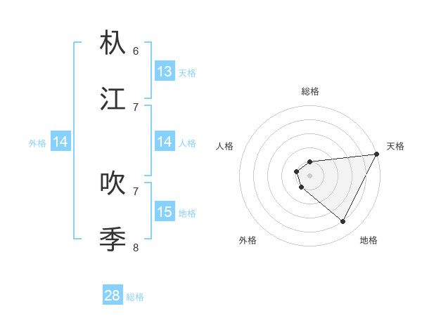 杁江 吹季さんの総格は28画の1点!