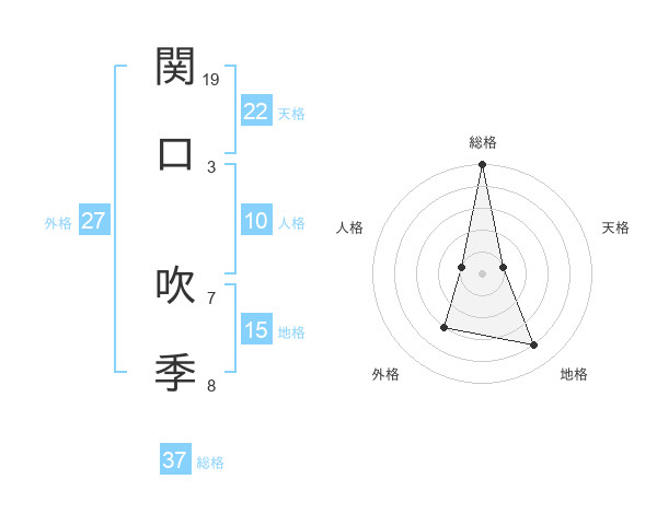 関口 吹季さんの総格は37画の5点!