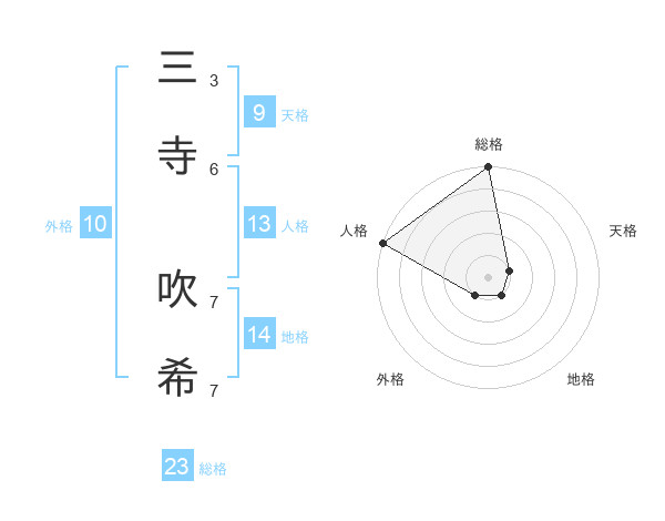 三寺 吹希さんの総格は23画の5点!
