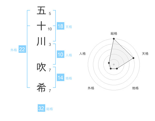 五十川 吹希さんを姓名の画数から五運を鑑定