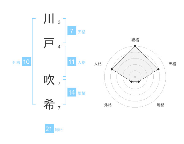 川戸 吹希さんの総格は21画の5点!