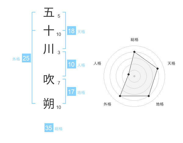 五十川 吹朔さんを姓名の画数から五運を鑑定