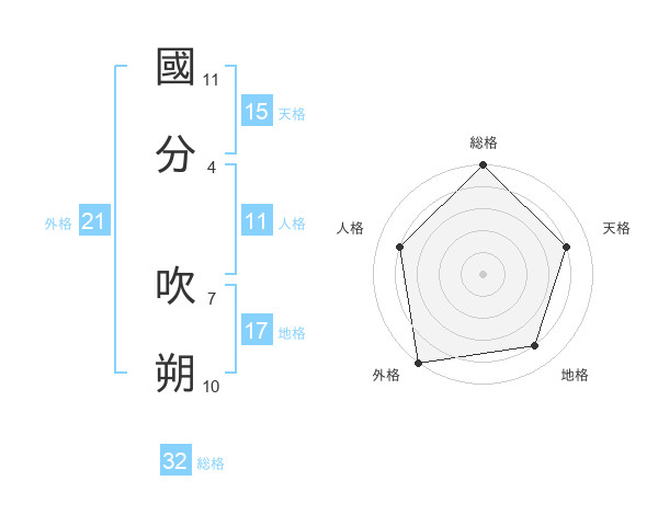 國分 吹朔さんを姓名の画数から五運を鑑定
