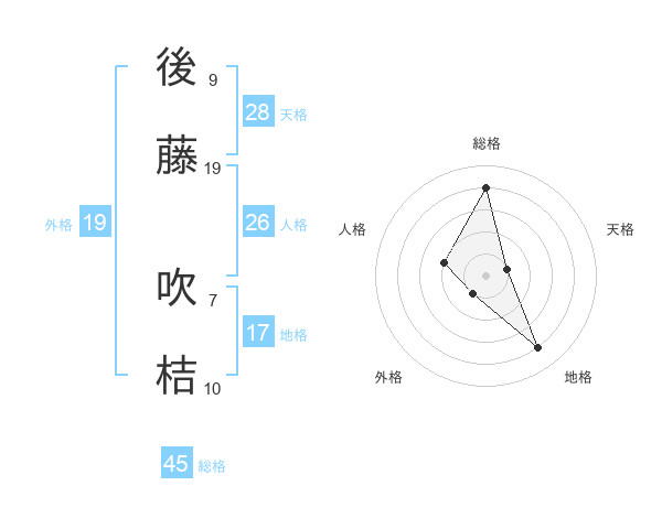 後藤 吹桔さんを姓名の画数から五運を鑑定