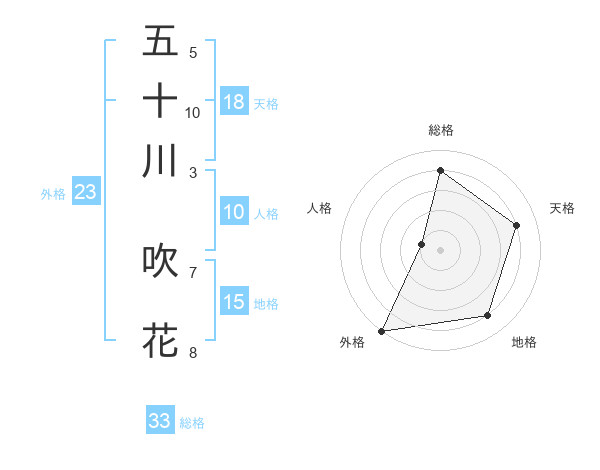五十川 吹花さんの外格は23画の5点!