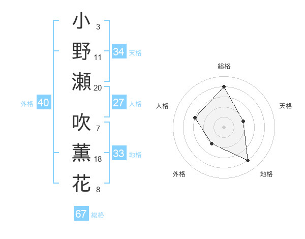 小野瀬 吹薫花さんを姓名の画数から五運を鑑定