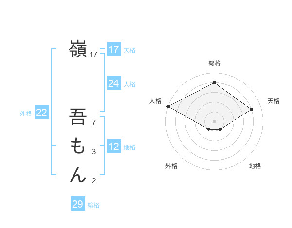 嶺 吾もんさんを姓名の画数から五運を鑑定