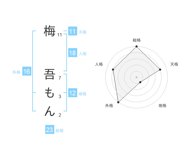 梅 吾もんさんを姓名の画数から五運を鑑定