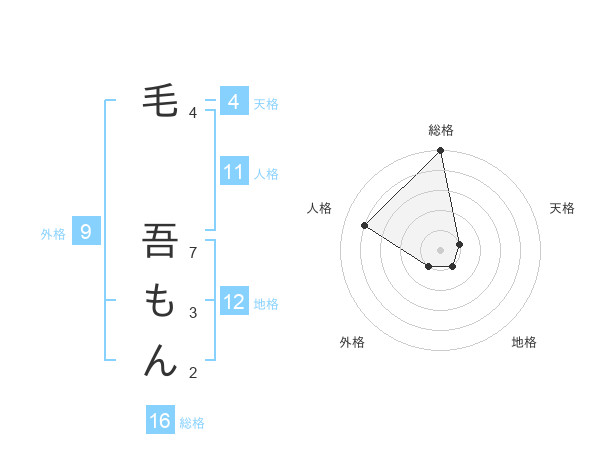 毛 吾もんさんを姓名の画数から五運を鑑定