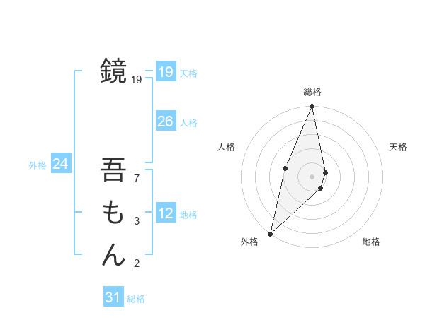 鏡 吾もんさんの総格は31画の5点!