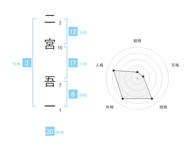 二宮 吾一さんの天格は12画の1点!