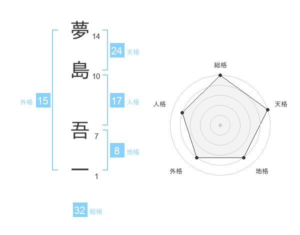 夢島 吾一さんを姓名の画数から五運を鑑定