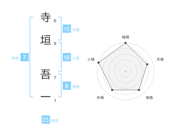 寺垣 吾一さんを姓名の画数から五運を鑑定