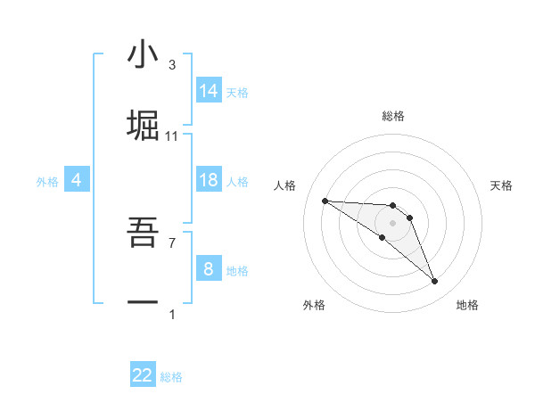 小堀 吾一さんを姓名の画数から五運を鑑定