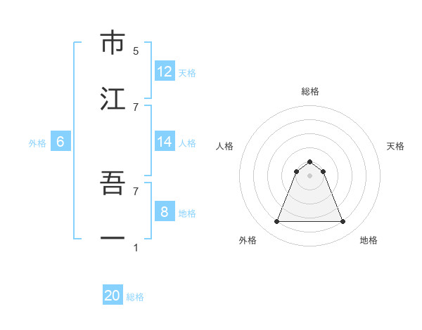 市江 吾一さんの総格は20画の1点!