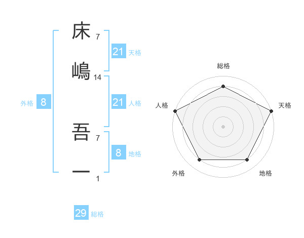 床嶋 吾一さんを姓名の画数から五運を鑑定