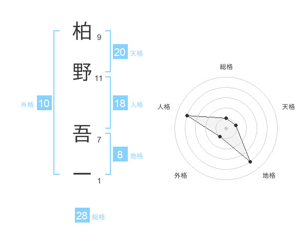 柏野 吾一さんを姓名の画数から五運を鑑定