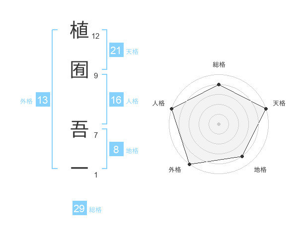 植囿 吾一さんを姓名の画数から五運を鑑定