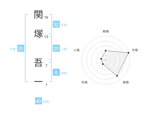 関塚 吾一さんの天格は32画の5点!