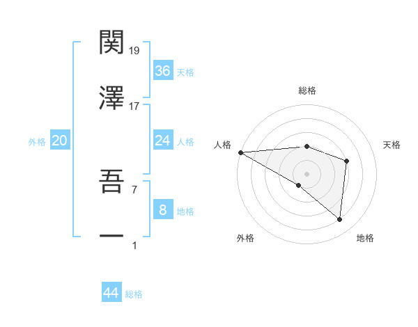 関澤 吾一さんを姓名の画数から五運を鑑定