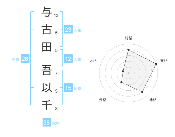 与古田 吾以千さんを姓名の画数から五運を鑑定