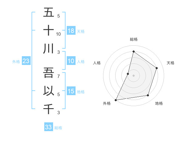 五十川 吾以千さんを姓名の画数から五運を鑑定