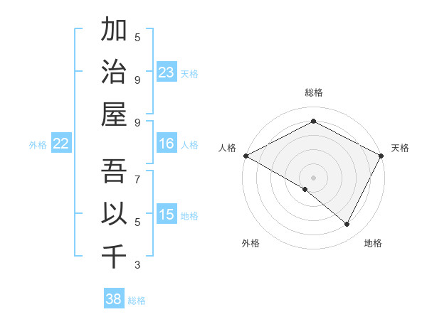 加治屋 吾以千さんを姓名の画数から五運を鑑定