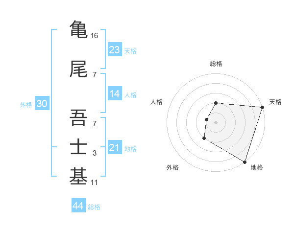 亀尾 吾士基さんを姓名の画数から五運を鑑定