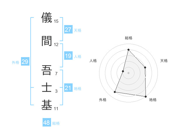 儀間 吾士基さんの外格は29画の4点!