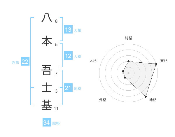 八本 吾士基さんの地格は21画の5点!