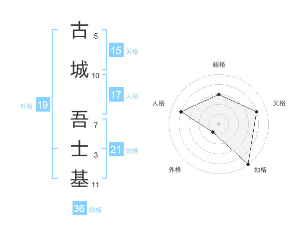 古城 吾士基さんの地格は21画の5点!