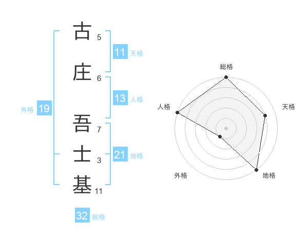 古庄 吾士基さんの総格は32画の5点!