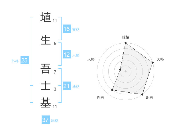 埴生 吾士基さんを姓名の画数から五運を鑑定