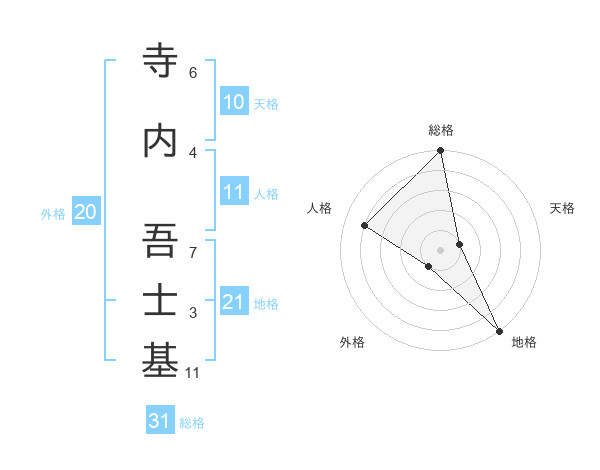 寺内 吾士基さんを姓名の画数から五運を鑑定