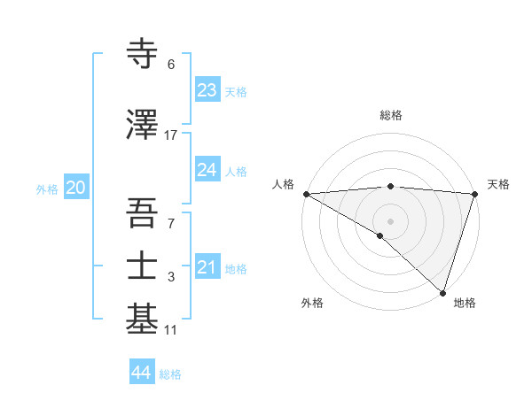 寺澤 吾士基さんの天格は23画の5点!