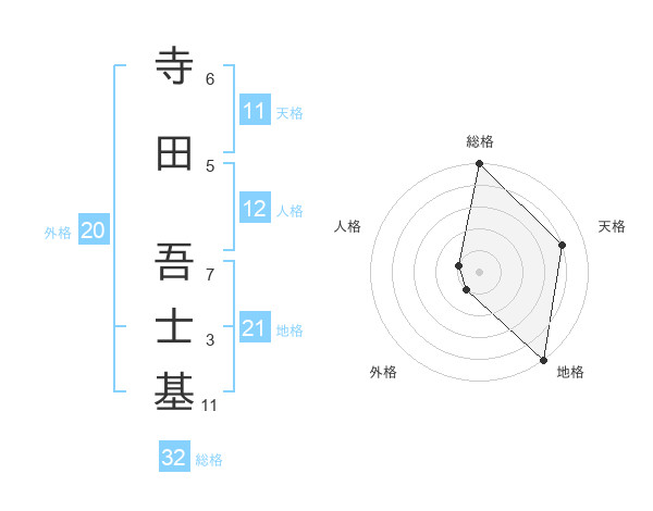 寺田 吾士基さんを姓名の画数から五運を鑑定