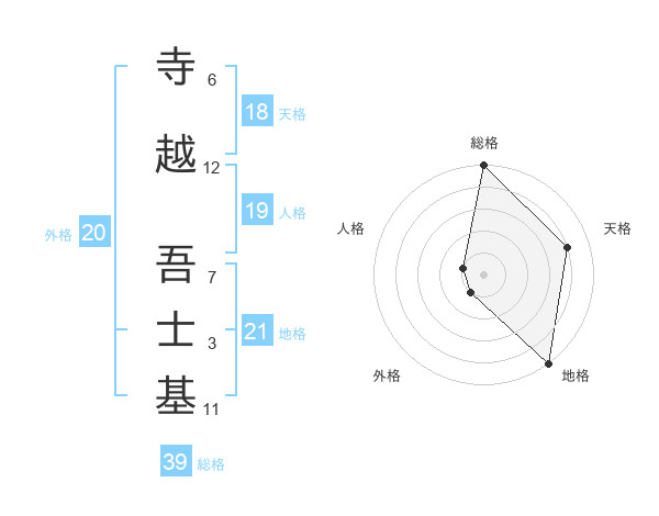 寺越 吾士基さんを姓名の画数から五運を鑑定