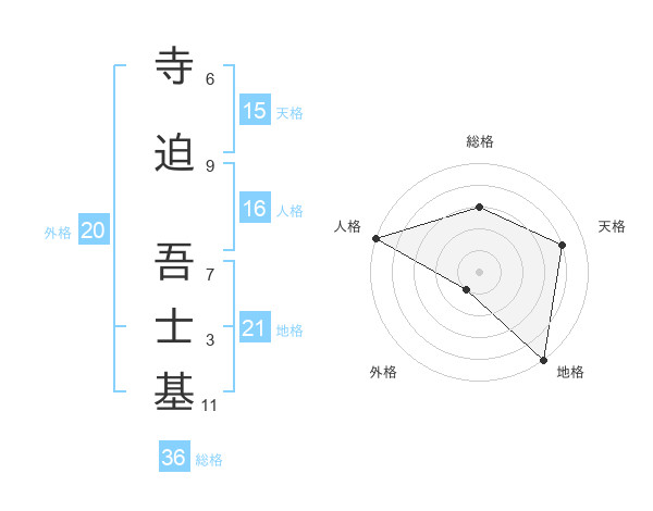 寺迫 吾士基さんの地格は21画の5点!