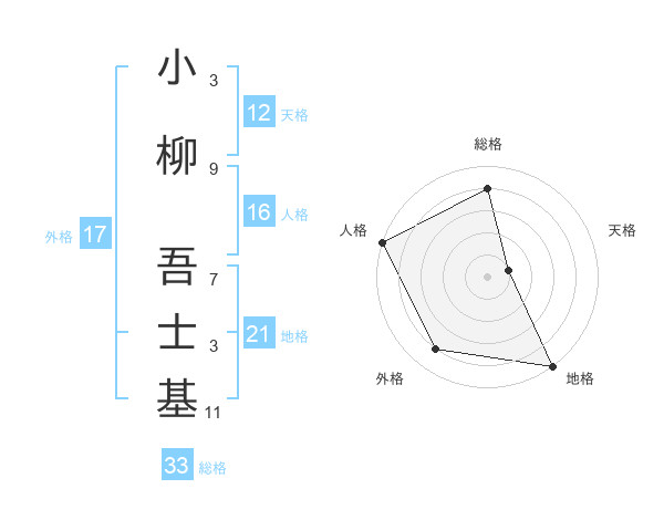 小柳 吾士基さんの地格は21画の5点!