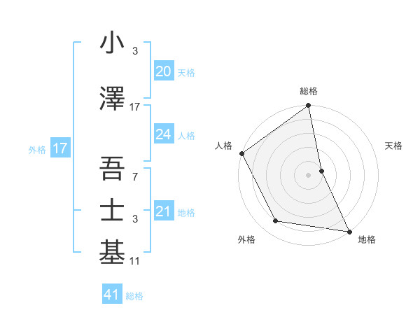 小澤 吾士基さんの地格は21画の5点!