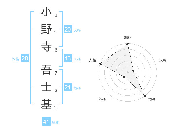 小野寺 吾士基さんの総格は41画の5点!