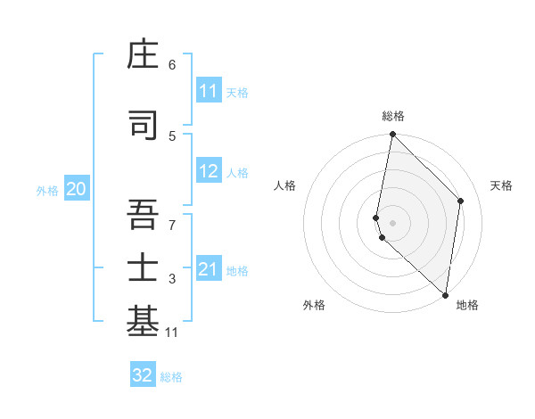 庄司 吾士基さんの地格は21画の5点!