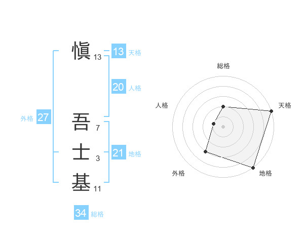 愼 吾士基さんの天格は13画の5点!