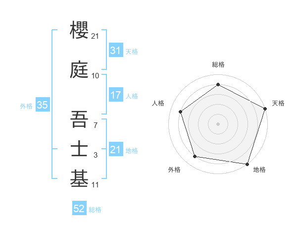 櫻庭 吾士基さんを姓名の画数から五運を鑑定