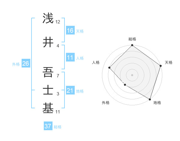 浅井 吾士基さんの総格は37画の5点!