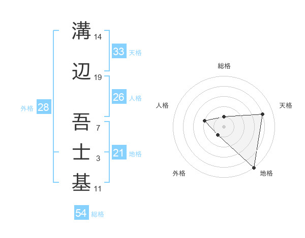 溝辺 吾士基さんを姓名の画数から五運を鑑定